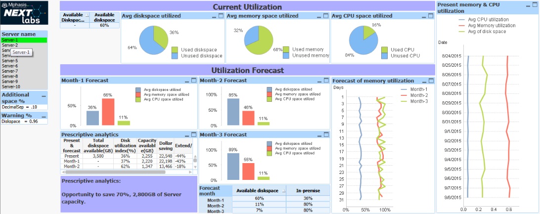 Storage / Capacity Management Overview: Predict business needs and optimize costs.Based on a research upto 30% of servers are comatose and no longer needed, which could lead to lowering infrastructure and maintenance costs. Based on historical analysis and pattern matching, InfraGraf® predicts the demand and makes recommendations as to when enterprises need to go on cloud or extend or reduce the virtual capacity for optimized cost.